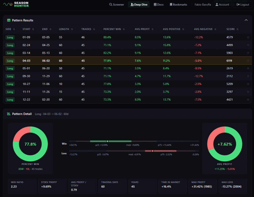 If you want to explore it yourself, SeasonHunter offers a 2-week free trial with full Pro access, no credit card required. It’s how I’d suggest you start: run the screener, find a pattern, and paper trade it before committing real capital. The workflow becomes intuitive very quickly.