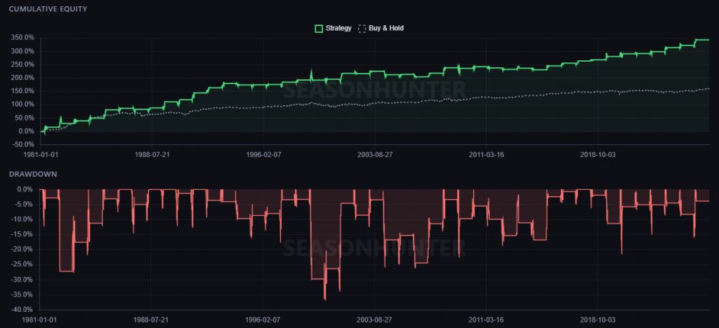 Indeed, if I had traded this seasonal pattern over all the years, I would have gained a great cumulative profit.